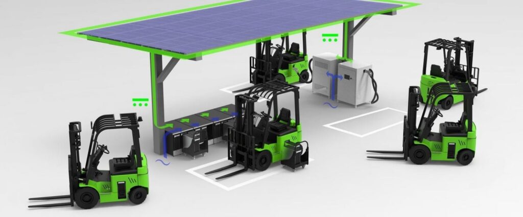 Os benefícios das empilhadeiras elétricas com sistema de painéis fotovoltaicos são diversos, destacando-se principalmente: